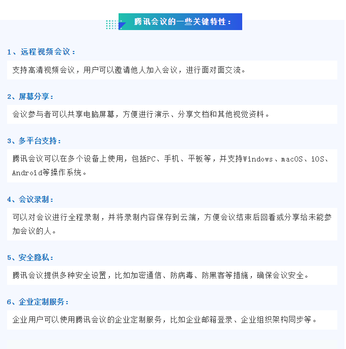 腾讯会议是由腾讯公司推出的一款云视频会议产品,它支持多种终端设备,包括电脑、手机、平板等,用户可以通过这些设备进行远程视频会议、在线文档协作、屏幕共享等操作。